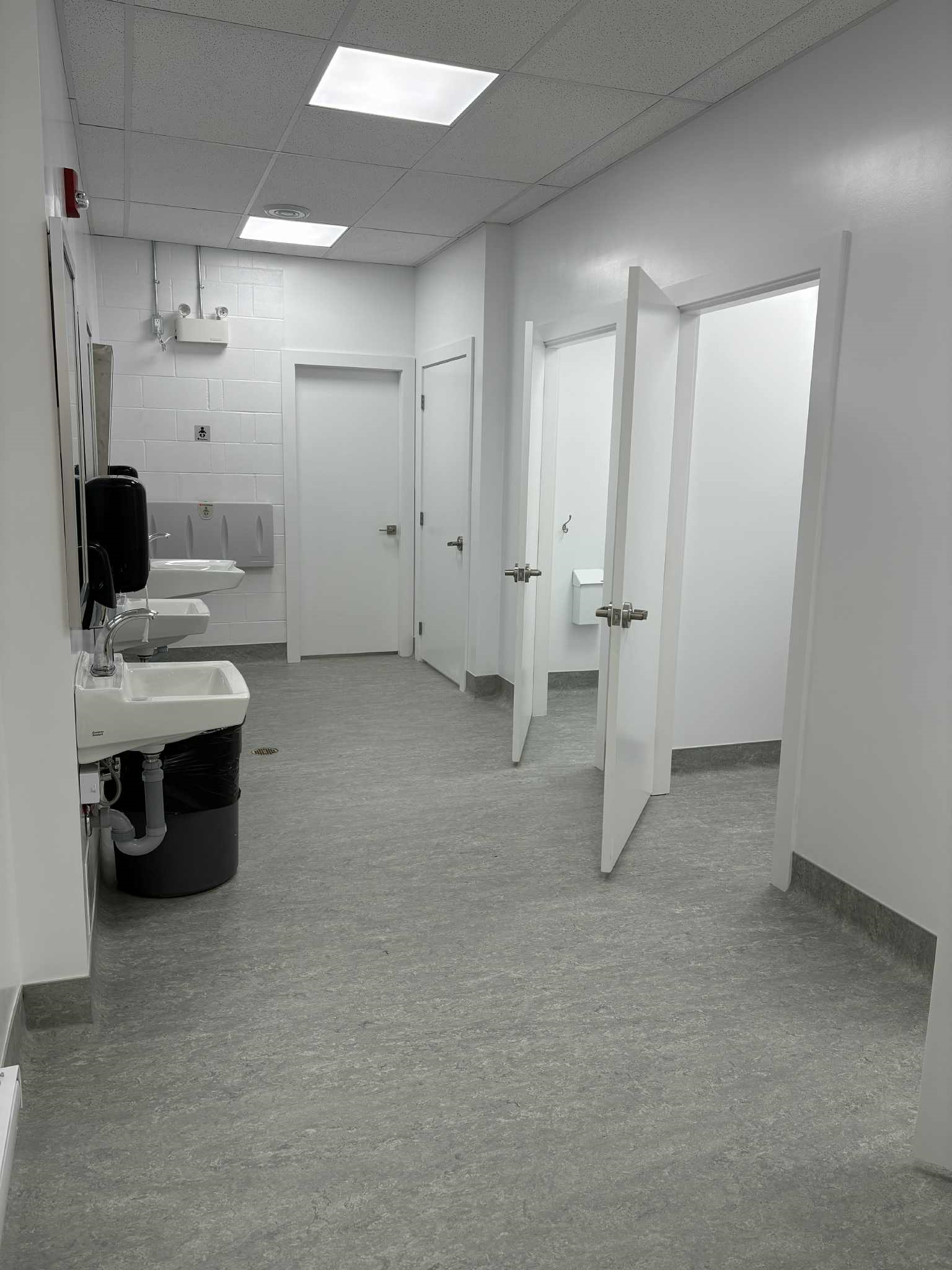 - An accessible water bottle filling station in the corridor outside the washrooms