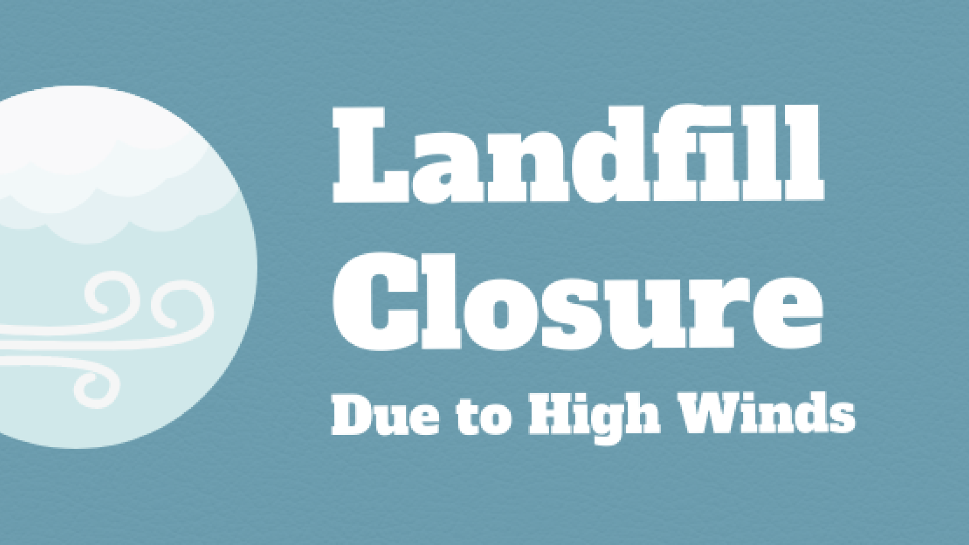 Nov 24 2021 Type(s) Public Notice Previous 1 of Next Due to high winds, the Landfill will be closed effective November 24, 2021 and 1pm. Updates will be provided when re-opened.